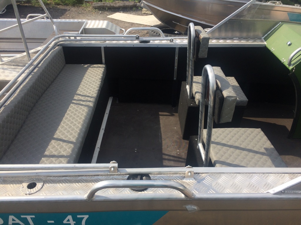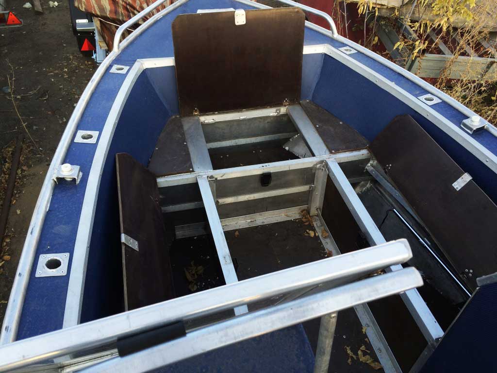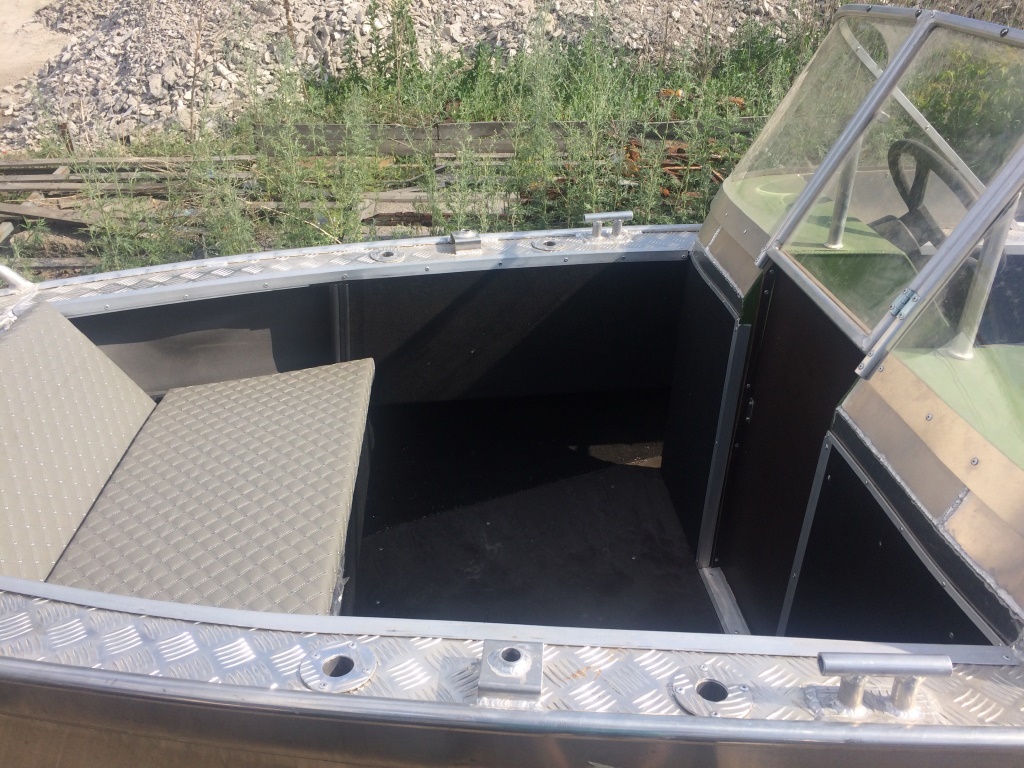 - Носовой кокпит оборудован сиденьем с рундуком для хранения вещей и оборудования