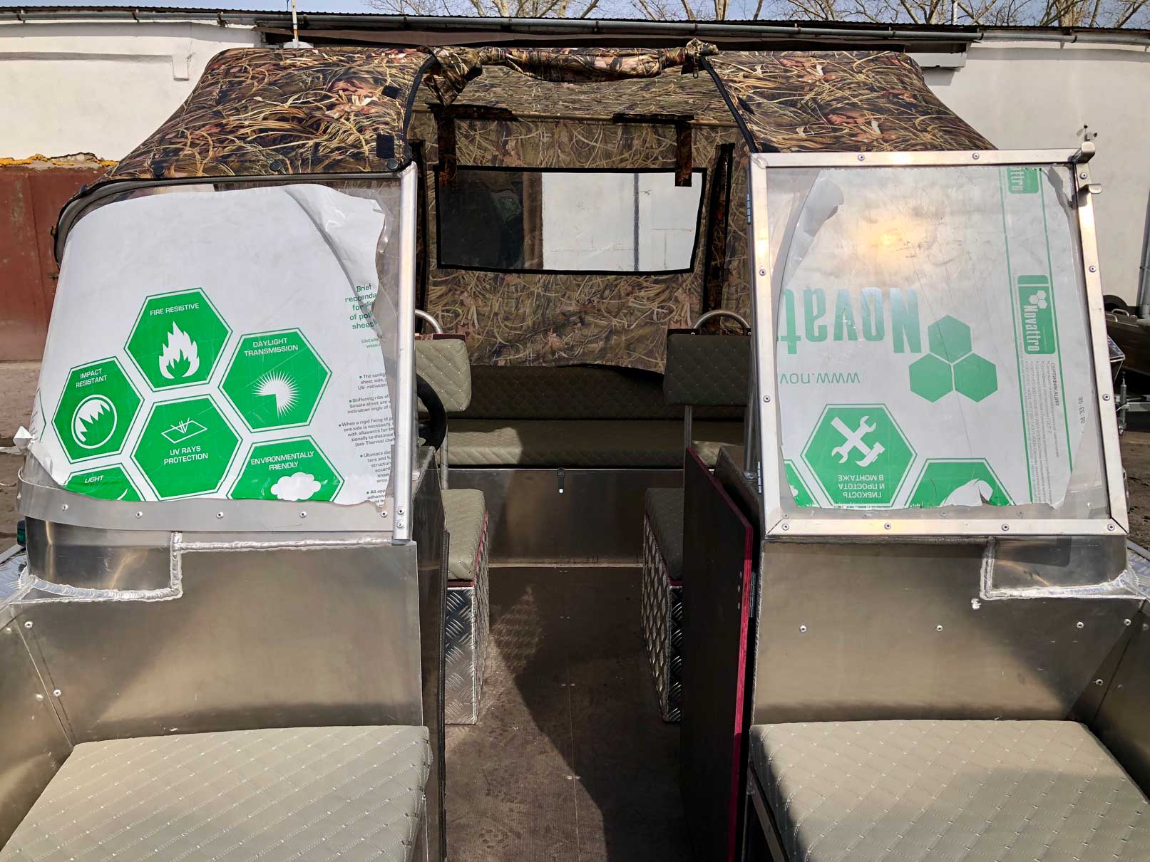 - Ветровое стекло из «е» образного алюминиевого профиля