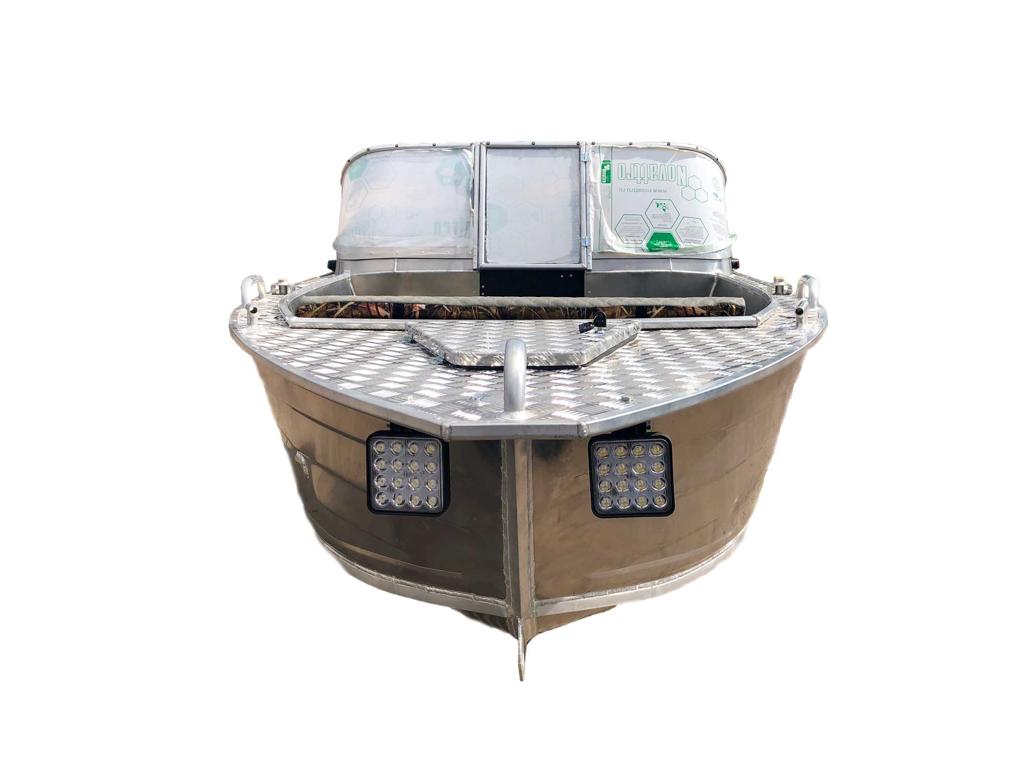 - Алюминиевая панель управления катером состоящая из двух консолей, в комплекте (рулевой редуктор, штурвал, рулевой трос, дверца прохода в носовой кокпит)